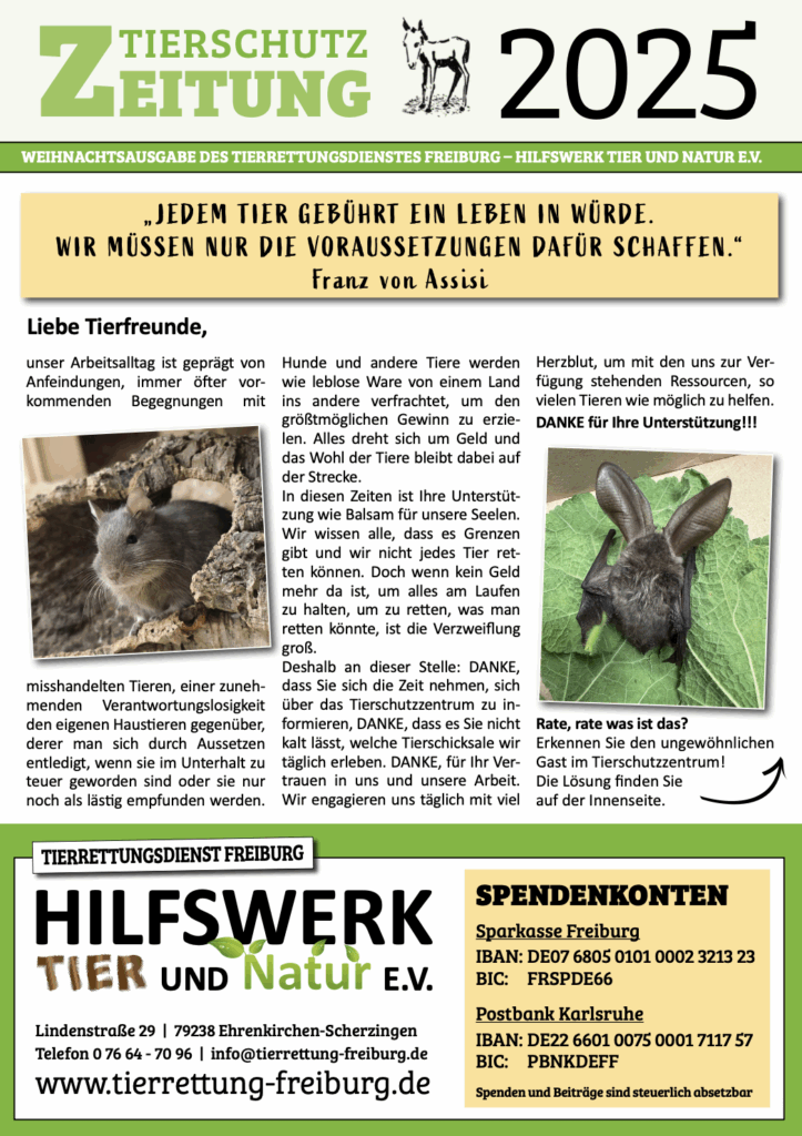 Deshalb an dieser Stelle: DANKE, dass Sie sich die Zeit nehmen, sich über das Tierschutzzentrum zu informieren, DANKE, dass es Sie nicht kalt lässt, welche Tierschicksale wir täglich erleben. DANKE, für Ihr Vertrauen in uns und unsere Arbeit.