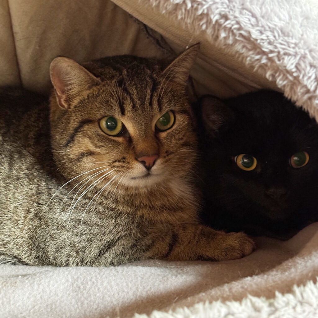| Besonderheiten: | Wir sind ein schüchternes Pärchen, das sich erst noch an Menschen gewöhnen muss. Wir suchen entweder zusammen nach einem ruhigen Zuhause oder getrennt jeweils zu einer sozialen Zweitkatze, da wir uns sehr gut mit unseren Artgenossen verstehen. |
