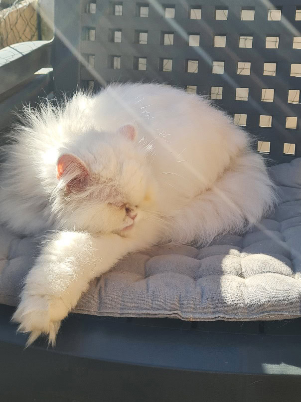 Hallo ihr Lieben, Ich möchte heute mal ein Lebenszeichen von mir geben und euch mitteilen, dass es mir sehr gut geht! Ich habe mich gut eingelebt und verstehe mich auch gut mit Elli. Ab und zu spielen wir fangen, aber am liebsten halte ich mich auf dem Balkon auf. Liebe Grüße, Sissy (vorher Gloria)